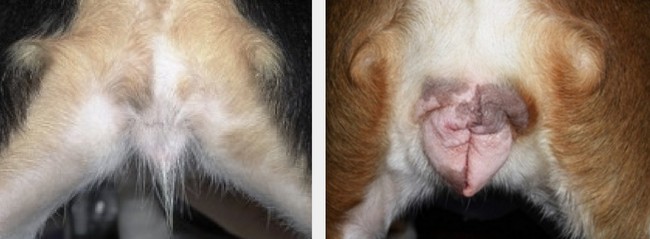 W początkowym okresie cieczki wyciek jest dość obfity, o ciemnym, lakowym zabarwieniu, rozpulchnienie niewielkie, a suka wprawdzie chętnie bawi się z psem, ale nie dopuszcza do większych poufałości a przy próbach krycia zdecydowanie się odgryza. Po około ośmiu dniach wyciek staje się bardziej lepki, za to mniej obfity i wyraźnie rozjaśniony, jasno-łososiowy. Suka odstawia ogon i chętnie akceptuje zaloty psa.