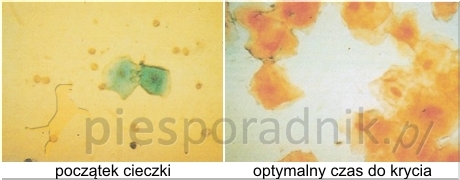 Tego typu badanie trzeba wykonać kilkakrotnie, rozpoczynając, przy normalnej cieczce, od około 7-go dnia po jej rozpoczęciu. Pozwala to prześledzić dynamikę wzrostu komórek świadczących o zbliżającej się owulacji i z pewnym wyprzedzeniem określić optymalny dzień do krycia.