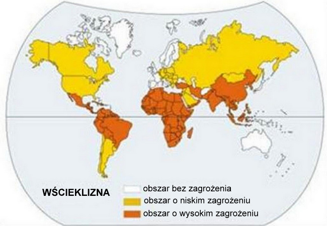 Wścieklizna jak widać występuje na całym świecie. Wolne od niej są tylko: Oceania, Skandynawia, Antarktyka i Japonia. Stanowi bardzo poważny problem w krajach tropikalnych, gdzie większość zachorowań na wściekliznę wśród ludzi spowodowana jest pogryzieniem przez psy. W Europie natomiast najwięcej przypadków wścieklizny spotyka się wśród lisów. Na szczęście, dzięki prowadzonym akcjom doustnych szczepień zwierząt wolno żyjących, znacznie zmniejszyło się występowanie tej choroby. W Polsce na skutek wprowadzenie obowiązku corocznych szczepień wścieklizna u psów została praktycznie wyeliminowana. Większym zagrożeniem są koty, ponieważ ich szczepienie nie jest obowiązkowe, ponadto duża część z nich korzysta z dużej swobody i jest bardziej narażona na kontakt z zarażonymi wścieklizną zwierzętami.