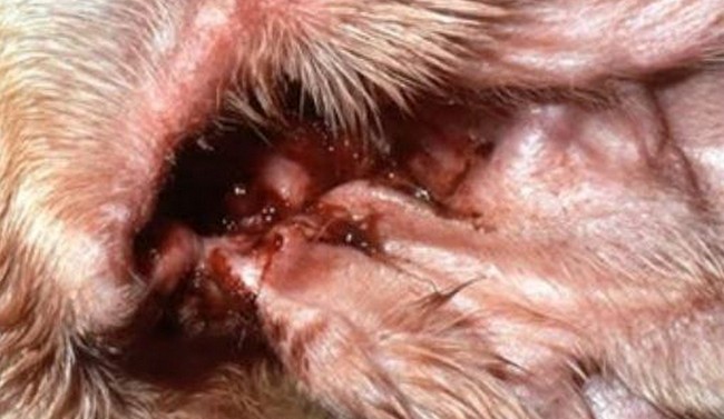 • Infekcje drożdżakowe. Sprzyja temu duża wilgotność panująca w kanale słuchowym, dlatego też najczęściej spotyka się je u psów o długich, słabo wentylowanych uszach, w których długo utrzymuje się wilgoć stanowiąca idealne środowisko dla ich rozwoju. Nie znaczy to jednak, że u psów o uszach stojących infekcje drożdżakowe nie występują. Mogą się pojawić po zalaniu ucha wodą, lub na skutek zaniedbania podstawowej higieny tego narządu. Kanał słuchowy nie może być zarośnięty włosami, bo osadzająca się na nich woskowina może doprowadzić do jego zaczopowania a stąd już tylko krok do powstania stanu zapalnego