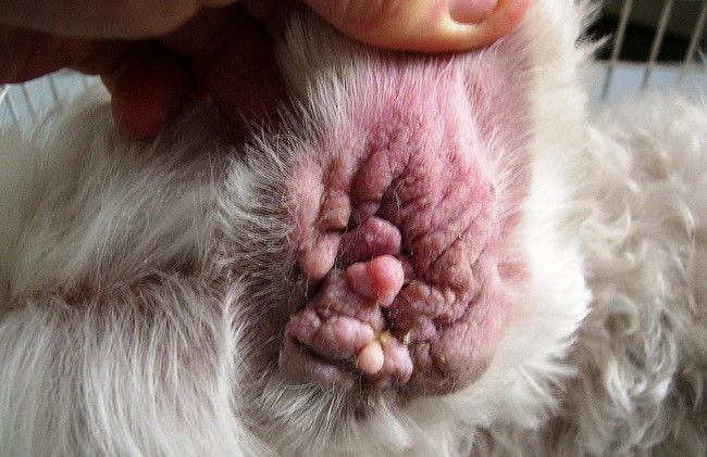 • Zakażenia bakteryjne, wśród których najczęstsze to gronkowce i pałeczka ropy błękitnej. Jeśli leczenie ma być skuteczne, konieczne jest pobranie wyskrobin w celu określenia rodzaju bakterii oraz ustalenie oporności na poszczególne antybiotyki. Jest to podstawa sukcesu w leczeniu, bo je ukierunkowuje i pozwala zastosować leki, które w przypadku tego, a nie innego psa będą najbardziej skuteczne.