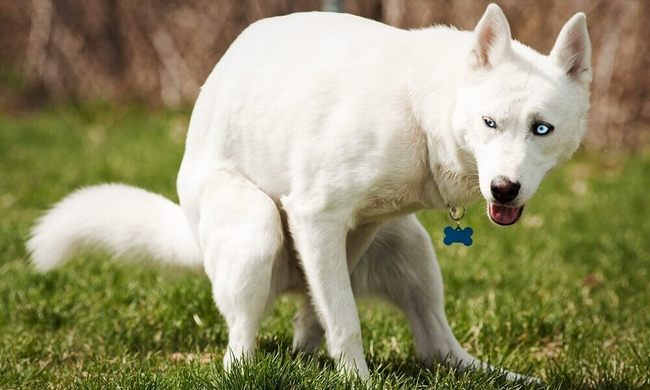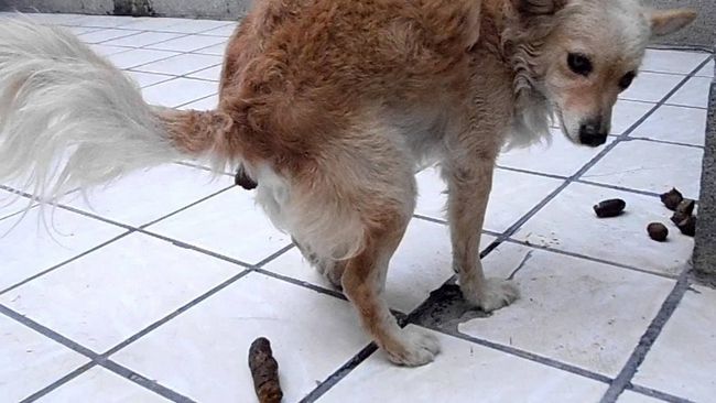 temu pieskowi wypróżnienie sprawia wyraźną trudność