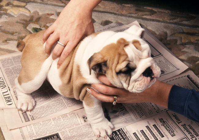 Jeśli przy domu jest ogród, przed wejściem do domu zatrzymujemy się na chwilę, żeby piesek mógł się załatwić na dworze. W przypadku, gdy właściciele mieszkają w bloku a malec jest w okresie poszczepiennej kwarantanny, wizytę rozpoczynamy od łazienki, w której zawczasu została przygotowana wymoszczona gazetami toaleta. Stawiamy pieska i czekamy aż się załatwi a potem chwalimy go i nagradzamy. Najczęściej popełnianym błędem jest postawienie go na dywanie, gdzie niemal natychmiast pojawia się wielka kałuża.